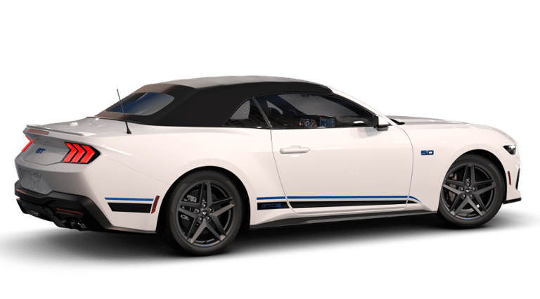 Unleash the West Coast spirit and muscle car mastery. The California Special Package makes every drive a spotlight moment---black side stripes, menacing black headlamp bezels, and exclusivity at every glance. Oxford White sets off the perfect contrast, blending vintage cool with cutting-edge performance and high-tech security.